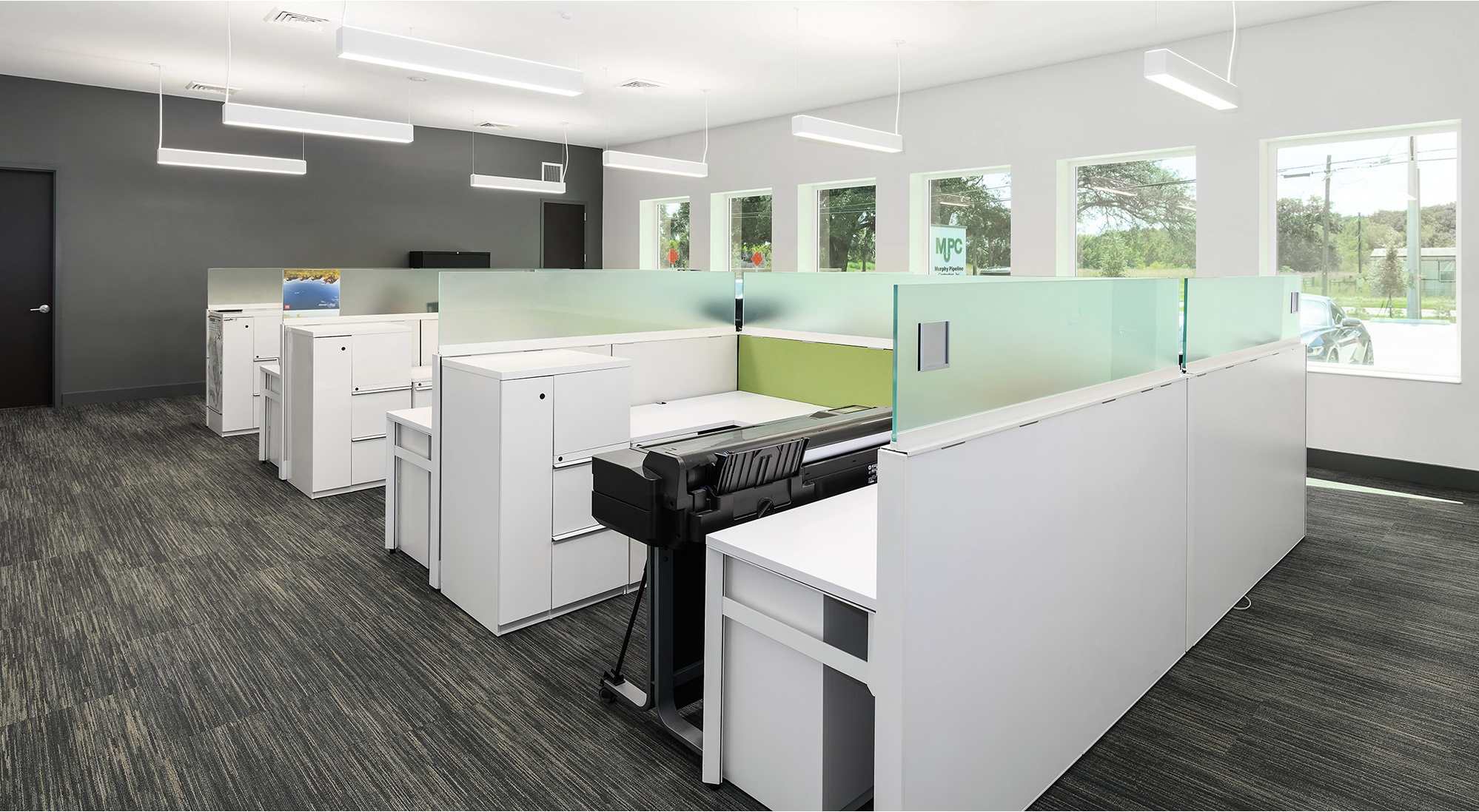 A new 2-story office building at 12201 New Berlin Road, Jacksonville, FL including executive offices, flex workstations, conference room, a kitchen / dining room, and elevator. This contemporary style building reflects the cutting-edge technology provided by our client and features the latest materials and a monumental staircase with solid mahogany wood treads. This project also included a separate 10,000 square foot pre-engineered metal warehouse building.